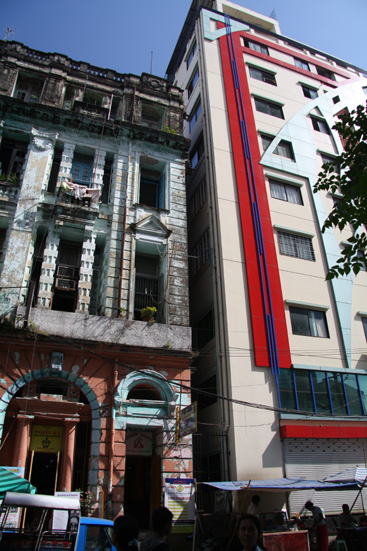 The roads are bumpy, the taxis and cars are exceptionally old (we were taken into Yangon in a 30 year old Toyota minibus) and the buildings, with the exception of the ubiquitous payas (pagodas), the new Chinese apartment blocks and a handful of colonial buildings that are now in the hands of the government are in varying states of decay: once white concrete walls stanied black by decades of monsoons and not a kyat (Burmese currency, pronounced ‘chat’) of maintenance.