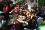 We are tired and hungry, so eat our curries gratefully, but – like nearly all Burmese food, it is cold and filthy. Power shortages mean there is no refrigeration here (apart from at the smarter establishments with their own generators) so all the local food is drenched with oil and garlic to preserve it, whilst all fish (including shellfish) are generally dried or fermented to increase their longevity: both methods are effective but the outcomes are disgusting.