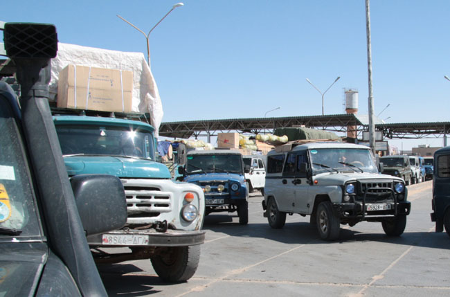 Despite the total absence of tarmac (or any form of grading), this is a reasonably busy ‘road’. All overland trade with China passes this way, mostly via the train line that guides us north but also by way of an array of dilapidated Soviet trucks and road trains, their size matched only by their unreliability.