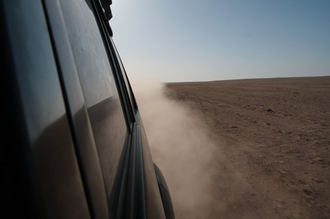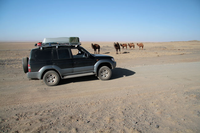 As soon as our tyres touch the sand, our pent-up trepidation transforms to sheer excitement –this is what proper overlanding is all about. We’ve had enough of Chinese highways and toll-roads; this is where the proper adventure starts again. We can’t see anything on the horizon apart from a deep-blue sky and endless sand and scrub. Bliss!
