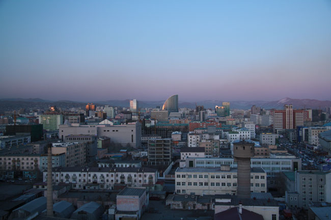 Luke’s assistant, a 24 year old, stocky Mongolian fellow called Ochir, arrives to take us up to Luke’s flat. Admiring the view of UB, ringed by snow-dusted mountains, we tell Ochir our plans of ‘heading west’
