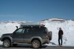 Leaving Choir, the change in climactic conditions and landscape is severe. We’d noticed progressively larger patches of snow as we headed north yesterday, but today we are immediately, and permanently, surrounded by white-blanketed plains. We’re glad the tarmac is here; driving on tracks through this would be slow and treacherous (although it makes us wonder what we have in store when we leave UB and head west).