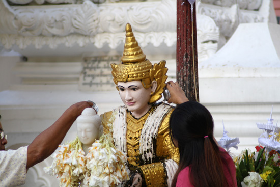The Shwedagon is re-gilted every year, and is said to be covered in a layer of gold six inches thick. It’s hard to believe, but looking at it, even if it was solid gold it couldn’t gleam any more.