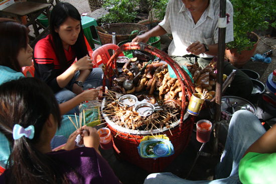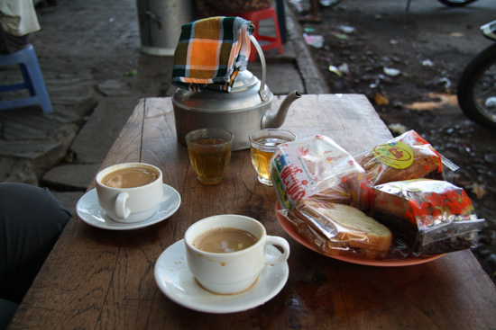 We find an open air street restaurant at the end of our block (Yangon is built on a grid system).