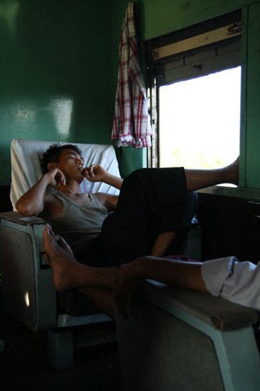 It is the oldest, slowest, bumpiest train either of us has ever been on. Indian and Bangladeshi affairs are modern and decidedly luxurious by comparison. We could almost have cycled to Mandalay quicker, and our spines would certainly have been in better shape at the end of the journey.