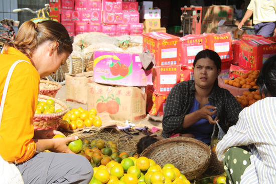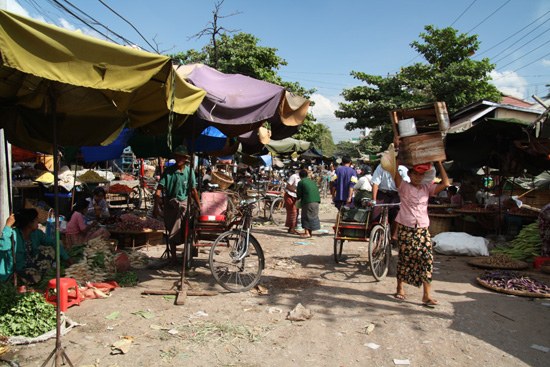 Just counting the stuff out is arduous – the highest denomination note is a 1000 kyat note, so we leave the market with our pockets stuffed with 196 1,000 kyat notes.