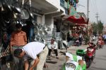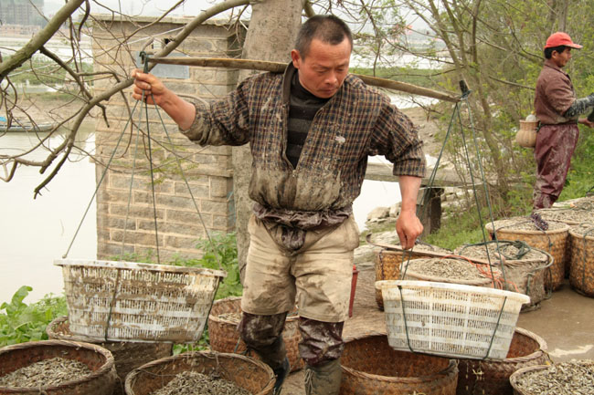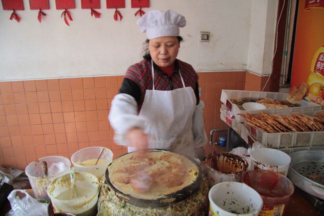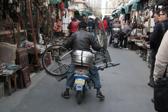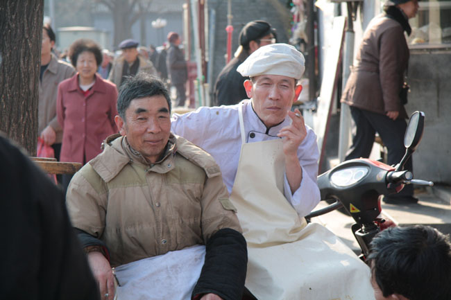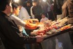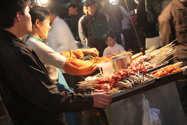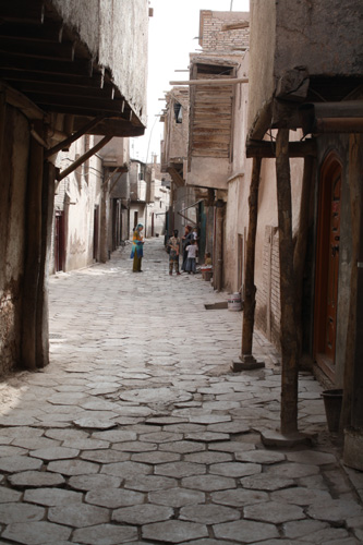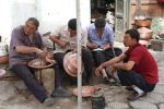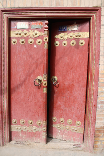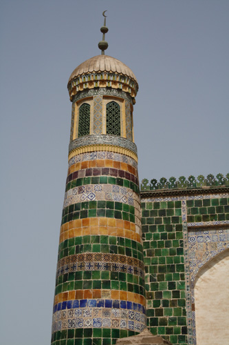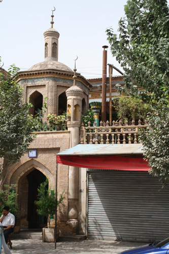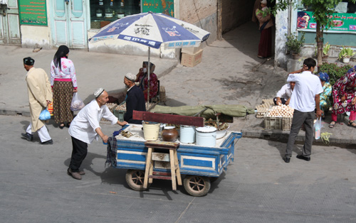 Depressingly, little remains of old Kashgar. We spend a relaxing afternoon wandering round the old city, with its narrow streets and adobe (mud and straw built around a timber frame) houses that nearly touch each other above the street, watching the bustle of local Uighur life. Traditional crafts are alive and well here: metal workers line the streets, hammering away, fabricating everything from kettles to copper cooking pots, bathtubs to knives. Musical instrument-makers tirelessly carve intricate designs on local guitar-like instruments. Everywhere people are selling Uighur bread, shashlik and noodles. It’s a lovely place to wander through, but unfortunately it doesn’t take long.