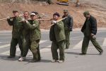 They are a paranoid bunch, too: one night, even the suspicion of us having taking a photo of some of them parading around our hotel car park brings a platoon of them storming into our hotel room at 9pm, accompanied by the very embarrassed and rather scared hotel manager. We are about to go to bed and not wearing much: Nina takes refuge in the bathroom to clothe herself whilst I attempt to stop them searching everything in sight. Nina emerges and between us we banish the majority back into the corridor with some stern words (neither of us will tolerate such behaviour from anyone, Chinese soldiers or not). Finally we are left with just the hotel manager, the aggressive and grim faced military security officer and one of his junior acolytes.