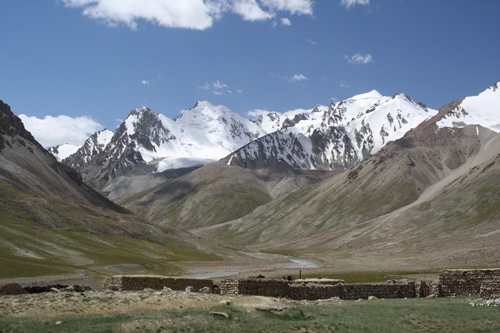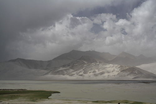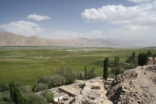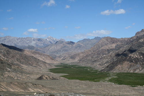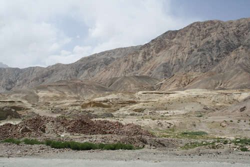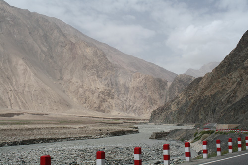 We then head south west along the Karakhoram Highway (literally translated as ‘Black rocks high road’), which we won’t leave for a week. We travel through some stunning but harsh mountain scenery to Tashkorgan, which nestles in a green valley at 3100 metres, where we spend the night on the way to the Pakistan border. Another ancient Silk Route outpost, unfortunately most of the old stone fort (the only building of interest) was destroyed during the Cultural Revolution in the 70’s.