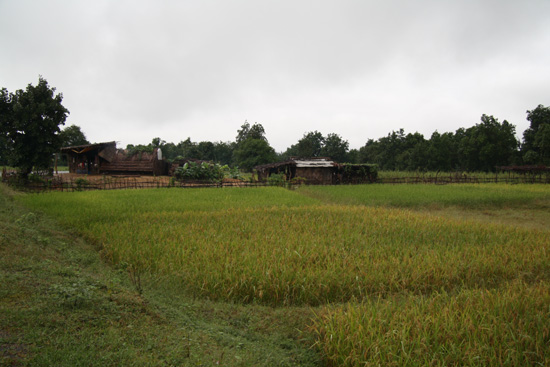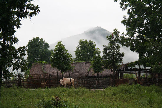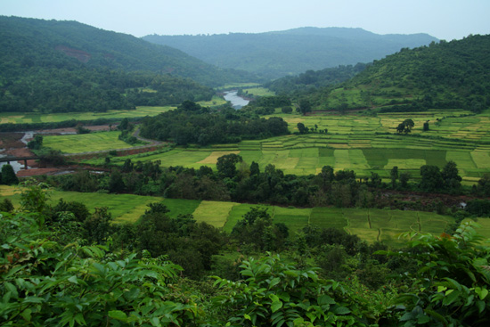 The scenery changes as soon as we leave the city: chiaroscuros of green paddy fields form verdant chequer boards through the valleys; above them dense forest flirts with wisps of mist that cling to the mountaintops. Amongst all this pleasantry, unfortunately, comes rain – we have caught up with the tail end of the late monsoon as it sweeps south westerly towards the Arabian Sea.