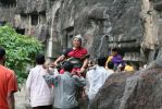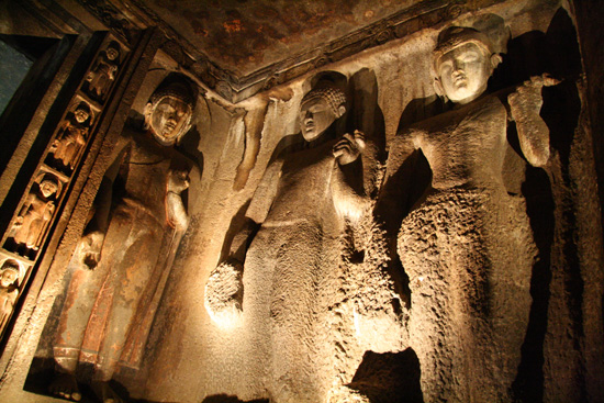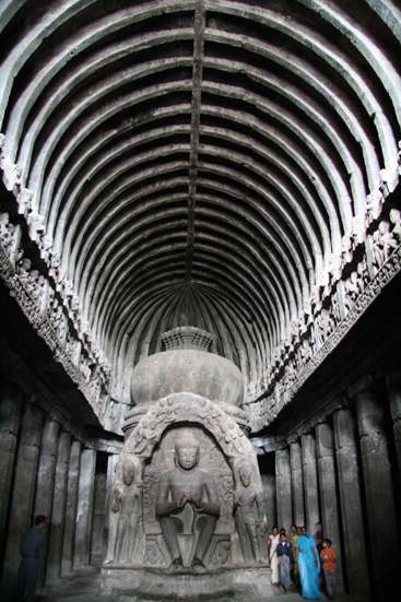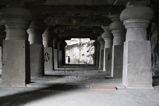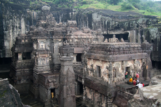 Ellora and Ajanta are extraordinary works of determination, rain or not. The complexes, about 100km from each other, comprise 34 and 28 caves respectively – and are entirely hand carved over hundreds of years. ‘Cave’ is really the wrong word: these are great temples and meeting halls, carved as deep as 25 metres inside great basalt cliff faces, sometime two or three storeys high. Those at Ajanta are particular magnificent, occupying the side of a dramatic horseshoe shape gorge deep in the Deccan plateau, and containing extraordinarily detailed cave paintings of Buddhist scenes that have survived in excellent condition for the best part of 1,500 years.