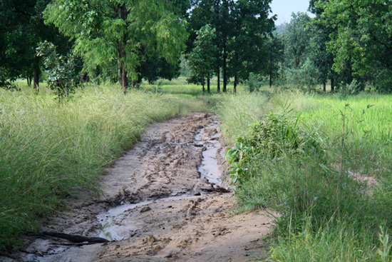 We push on, through our deepest and most treacherous river yet, and relieved, arrive in Rampur at 5:10pm. But Rampur is barely a village, more a collection of basic thatched huts; its population outnumbered by its livestock. A crowd soon gathers: there is not a single other car in this village, which is cut off from all motorized transport except scooters for six months of the year. Depressingly, the locals inform us in their very limited English that this is the end of line. From here, the road to Pachmarhi, just a tantalising yet infuriating 35km further on, is impassable: the rivers are still too large and too deep because of the late monsoon. The only way is to retrace our tracks to the main road and drive 150km the long way round.