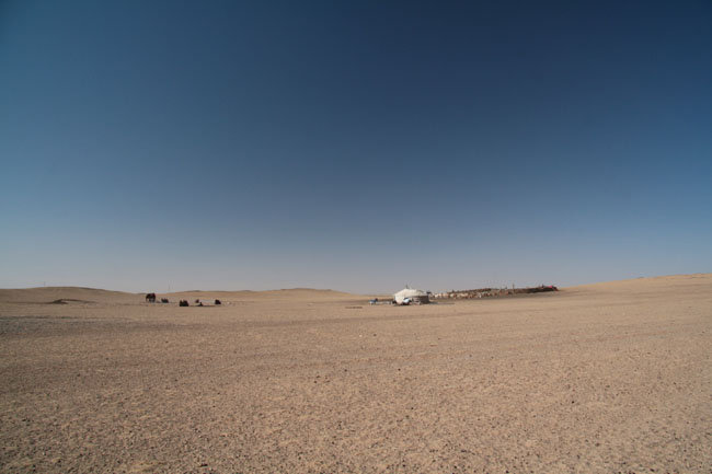 Fully refreshed after an early night, we’re up on Saturday morning at 7am to hit the road, or track, or whatever the desert may have in store for us. Sure enough, just beyond the last house, the aged asphalt disintegrates into sand and the Gobi Desert stretches out before us.