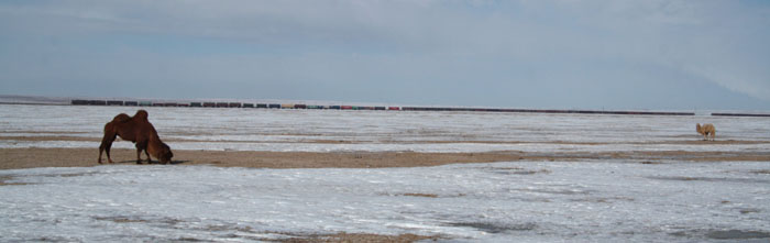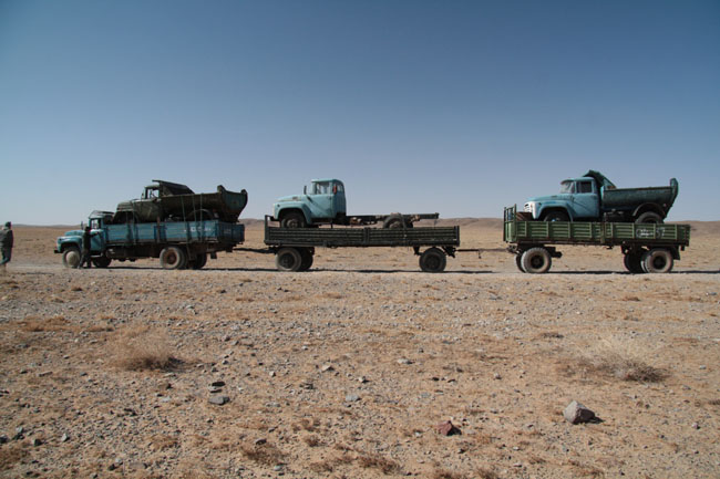 Despite the total absence of tarmac (or any form of grading), this is a reasonably busy ‘road’. All overland trade with China passes this way, mostly via the train line that guides us north but also by way of an array of dilapidated Soviet trucks and road trains, their size matched only by their unreliability.