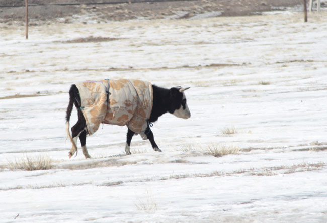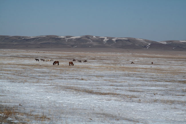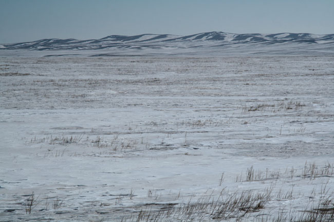 Within minutes, we start to see the after-effects of the harsh winter: a zud. Zuds are livestock famines caused by hard winters or over-grazing – either the snow is so heavy that the grass is totally covered, or a late freeze hampers water supplies, or heavy snow diverts too many animals to the same areas, so trampling the wet grasslands and destroying scarce food supplies.
