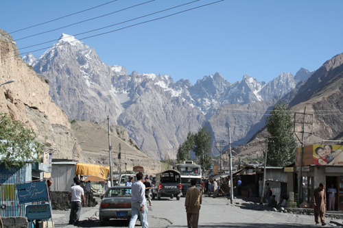We are relieved to reach Gulmit, 12 hours after leaving Tashkorgan; a well tended little village surrounded by lush crops of wheat and a profusion of heavily laden apricot trees, all nestling in a steep valley overlooked by the enormous Ultar Glacier.