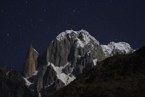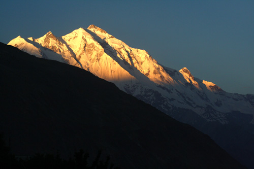We spend two days in Karimabad, at Murad’s suggestion. Initially we are fearful of how we are going to fill our time, but this doesn’t prove problematic. You can stare at the views all day long here without getting bored: from every vantage point in this town as it sweeps up the mountainside, it is possible to see the enourmous face of Rakaposhi (7,788m) across the valley. Although by no means the highest mountain in the region, it is certainly the most impressive: it rises in a single face over 5km from it’s base above the Hunza River to it’s peak: the tallest single mountain face in the world.