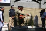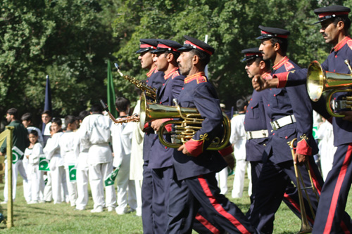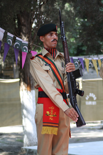 It is a treat to be here; more so as our visit fortuitously coincides with Pakistan’s Independence Day: 14th August. We arrive at the parade lawn for the military ceremony and celebrations at 8.15am sharp, ready for the 8.30am start. It turns out proceedings will formally get underway at 10.00am, so we watch the rehearsals, which in many ways are as interesting as the ceremony itself. The poor soldiers in charge of the assembled schoolchildren have the worst job: trying to get 100’s of excited children to stay sat cross-legged and in the right place for two hours is damned hard work, irrespective of whether you have an automatic rifle slung over your shoulder or not…