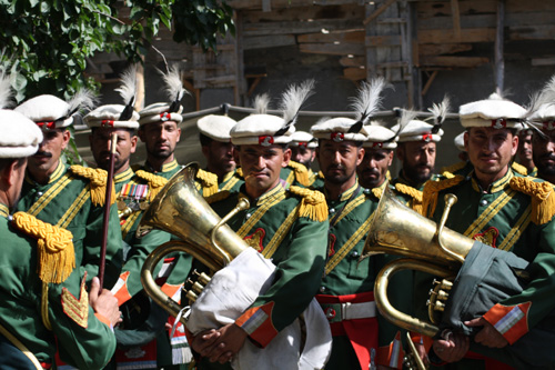 10.00am arrives; with it the Commander-in-Chief (Northern Areas). Anybody with a military or other interest in this part of the world would be delighted to know that the Gilgit Scouts produce an exemplary Guard of Honour for the C-I-C – exceptionally well drilled and turned out – unlike the rather comical police band which escorts them, shuffling along in an ungainly manner, embarrassingly out of step.