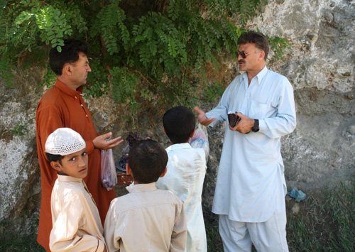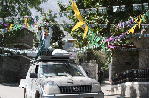 After the ceremony, on Murad’s suggestion, we buy a large Pakistan flag and attach it to our roof-rack, to the delight of the assembled crowd.