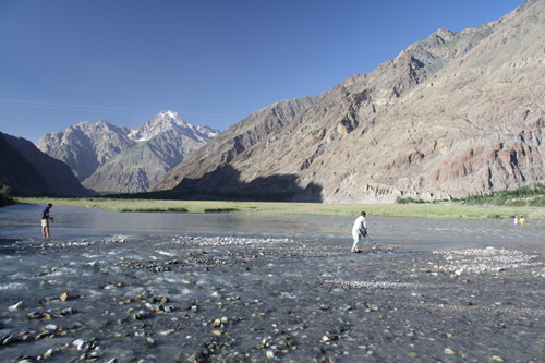 After this little debacle, we spend a happy afternoon in the Ishkoman Valley, fishing with Ayub (an expert) while Murad returns to his home to see his family and prepare supper for us as we are to stay with his family. Once again, we are unsuccessful, though this time our technique is not at fault, it appears a few local lads with nets have been here before us and scared away today’s catch. But the setting is perfect and in the evening we head to Murad’s house in high spirits. His family are charming and generous – supper is a magnificent feast of local chicken and goat curries, cheese chupattis, vegetables and rice.
