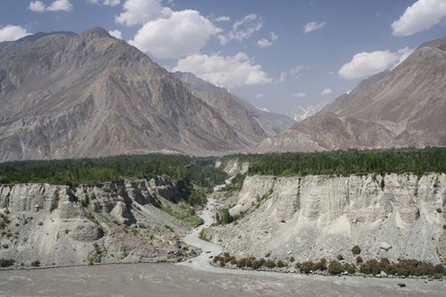 Hunza used to be an independent state, ruled by a succession of blue blooded Mirs until they finally acceded to Pakistan in 1974. Hunzas are experts at irrigation: the only possible means of making the land here fertile is to divert the mountain streams and rivers into numerous contour hugging water channels, then use them to irrigate painstakingly terraced fields that line the mountainsides. Hunzas have been doing this for centuries, indeed the only real greenery in the whole of the valley emanates from the villages.