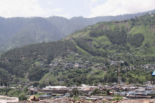 Driving up the hill towards the house, full of exuberance with our new addition to our car, we fail to notice that the Commissioner’s own bunting and flags are fully within range of our proud flag: alas before we can stop, we have acquired several streams of green and white bunting… Security is tight here and the numerous, heavily armed guards on duty are a little confused: it can’t be regular occurrence for them to see a British car, carrying a Pakistani flag, on Independence Day, trashing the Commissioner’s decorations whilst trying to weave through the concrete security barriers. Luckily for us, they are patient and understanding: whilst not hugely amused, they nevertheless allow us a glimpse of the house through the gates (for obvious reasons today we can’t go any further) before suggesting we be on our merry way. Nina and Ayub do a great job fixing the bunting from the top of the car before we leave, and it is smiles and giggles all round as we depart.