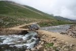 At the top of the Khunjerab Pass, we leave the razor wire of China behind and receive the most unexpected and friendliest welcome from any border guards yet. There are only a few of them at this remote spot, lounging around, smoking, smiling and generally doing all manner of things most un-Chinese, which is a delight. We can take a photo of the pass from here; unsurprisingly enough we couldn’t from the other side.