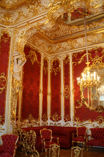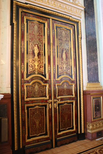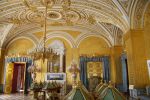 The state rooms are an endless, stupefying panoply of delicate frescoes, immaculate and gleaming gilt cornicing, vast crystal chandeliers, marbles in numerous shades of pinks, greens and reds, hewn from far corners of the earth, intricate alabaster and plaster ceilings, malachite pillars and gold – gold leaf, paint, too much to take in.