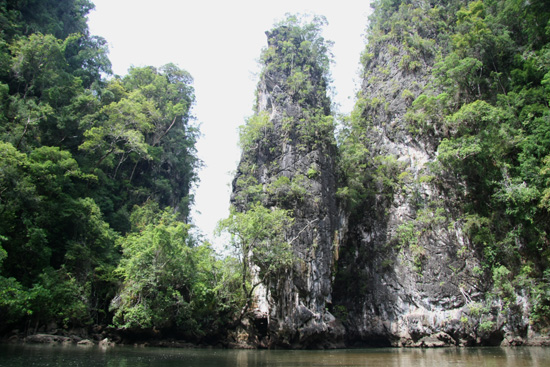 We paddle our way along tiny channels, enclosed by swamp on one side and rose grey monolithic cliffs on the other. It is an eerie, mysterious world, especially where the monoliths have created lagoons in the swamp – areas almost completely cut off from the outside world. Inside these, it’s a bit like being in a Jules Verne novel, until an Australian tour party noisily breaks the silence.