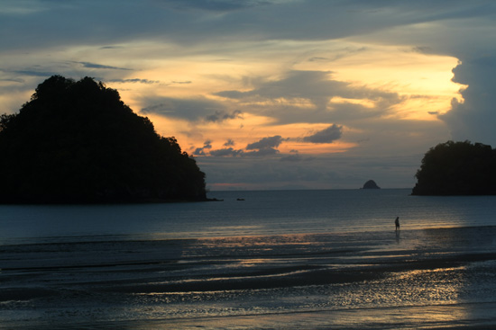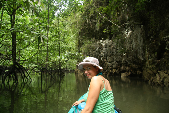 We spend most of our day in Ao Nang on a small kayak, silently paddling our way through the mangrove swamps of Phang Nga national park, enjoying the relative peace and seclusion and admiring the awe-inspiring limestone and quartzite monoliths that randomly rear out of the sea, hundreds of feet into the air.