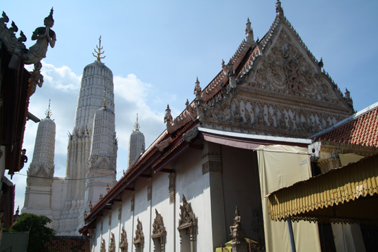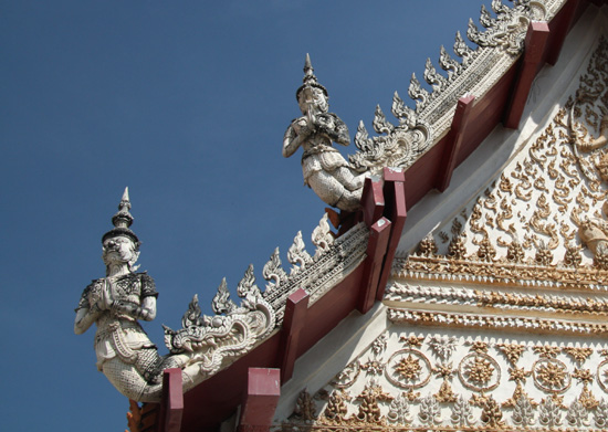 Our few days in Bangkok are unfortunately car-orientated. However, in between visits to a friendly but frustratingly in-efficient Toyota garage, we manage to slip in a little time sightseeing. We spend a happy Sunday afternoon wandering through a selection of the ancient, colourful and delicately sculpted Buddhist Wats (palaces) that are scattered throughout this modern metropolis, before jumping on the last river boat home.