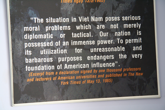 There are numerous one-sided references to the ‘illegal war’ which is probably a little far-fetched given the world-wide intensity of the Cold War at the time, but the American’s trial and widespread use of chemical warfare, dioxins and defoliants, coupled with the largest carpet-bombing campaign in history (across Laos and Cambodia as well as Vietnam) would be inexcusable in any context.